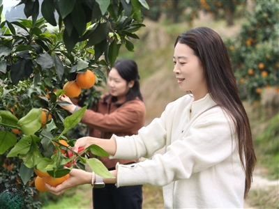 记者看到,一个个金黄的“果冻橙”点缀在绿叶间,淡淡的果香沁人心脾。随手摘下一颗剥开,果肉晶莹剔透、汁水饱满,让人垂涎欲滴。不少市民穿梭在果林里,一边采摘果实、品尝鲜汁,一边拍照留念,尽情享受采摘乐趣。