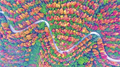 12月11日,忠县白公街道护国村,俯瞰千亩彩林,美如画卷(无人机照片)。
