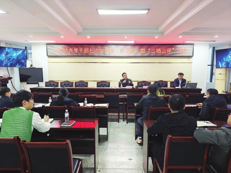 每周三晚上7点半,石宝镇政府青年干部教室便灯火通明,这是石宝镇“青年干部七点半课堂”暨“三晒三评”活动的现场。青年干部们通过晒成绩、晒亮点、晒问题,在比学赶超中共同进步。