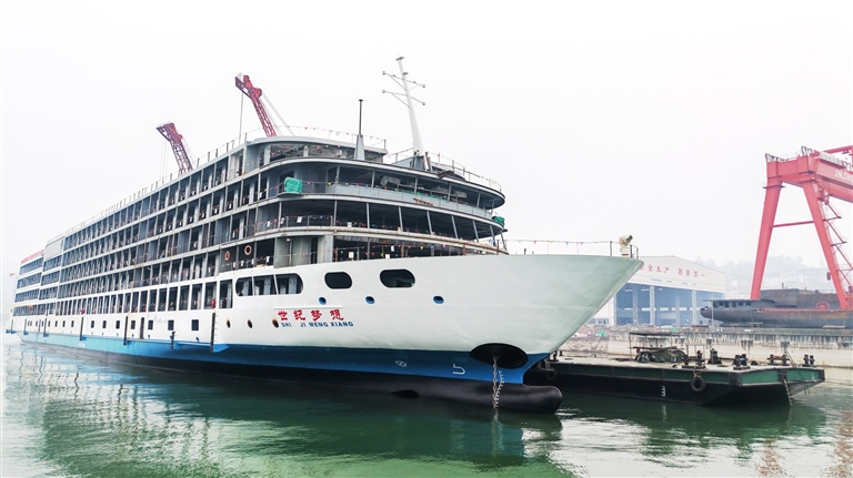 该游轮系忠县首艘自主建造的豪华游轮。自2025年10月19日顺利下水以来,建造单位重庆金龙船业加紧实施船体装修等施工,确保今年9月如期首航。