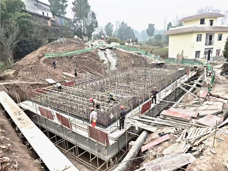 图为近日忠县黄钦水库扩建项目供水工程清水池施工现场。