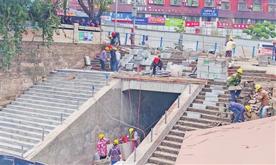经过3个多月的紧张施工,目前,该地下人行通道已经完成主体施工,正在进行内部瓷砖张贴、外部护栏安装等附属设施施工,将于今年春节前投入使用。